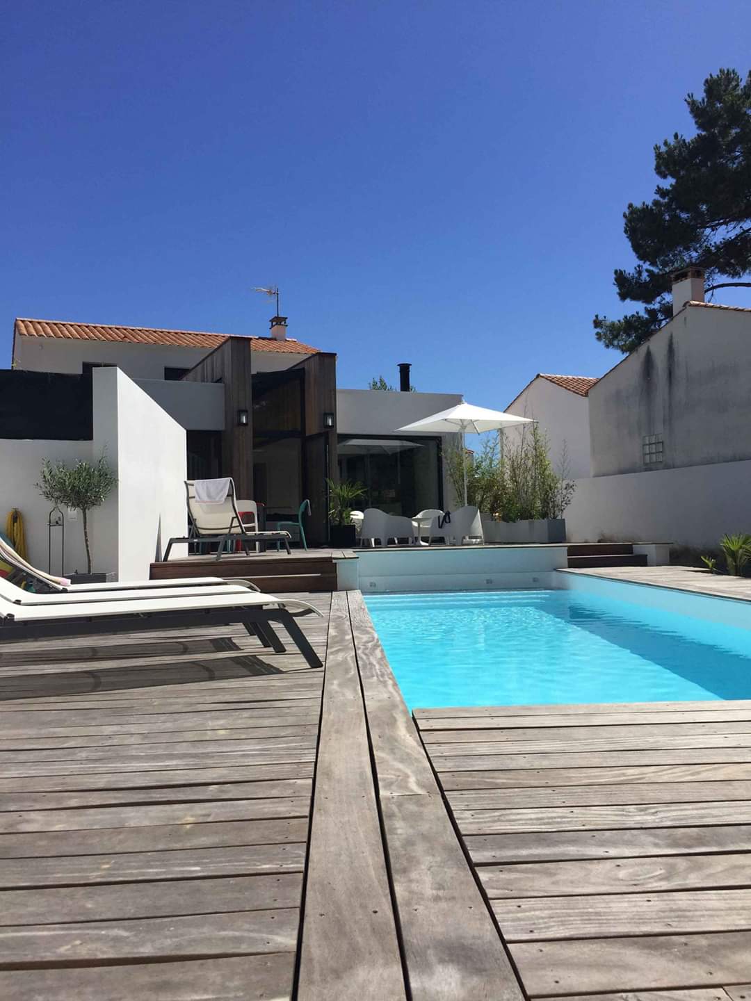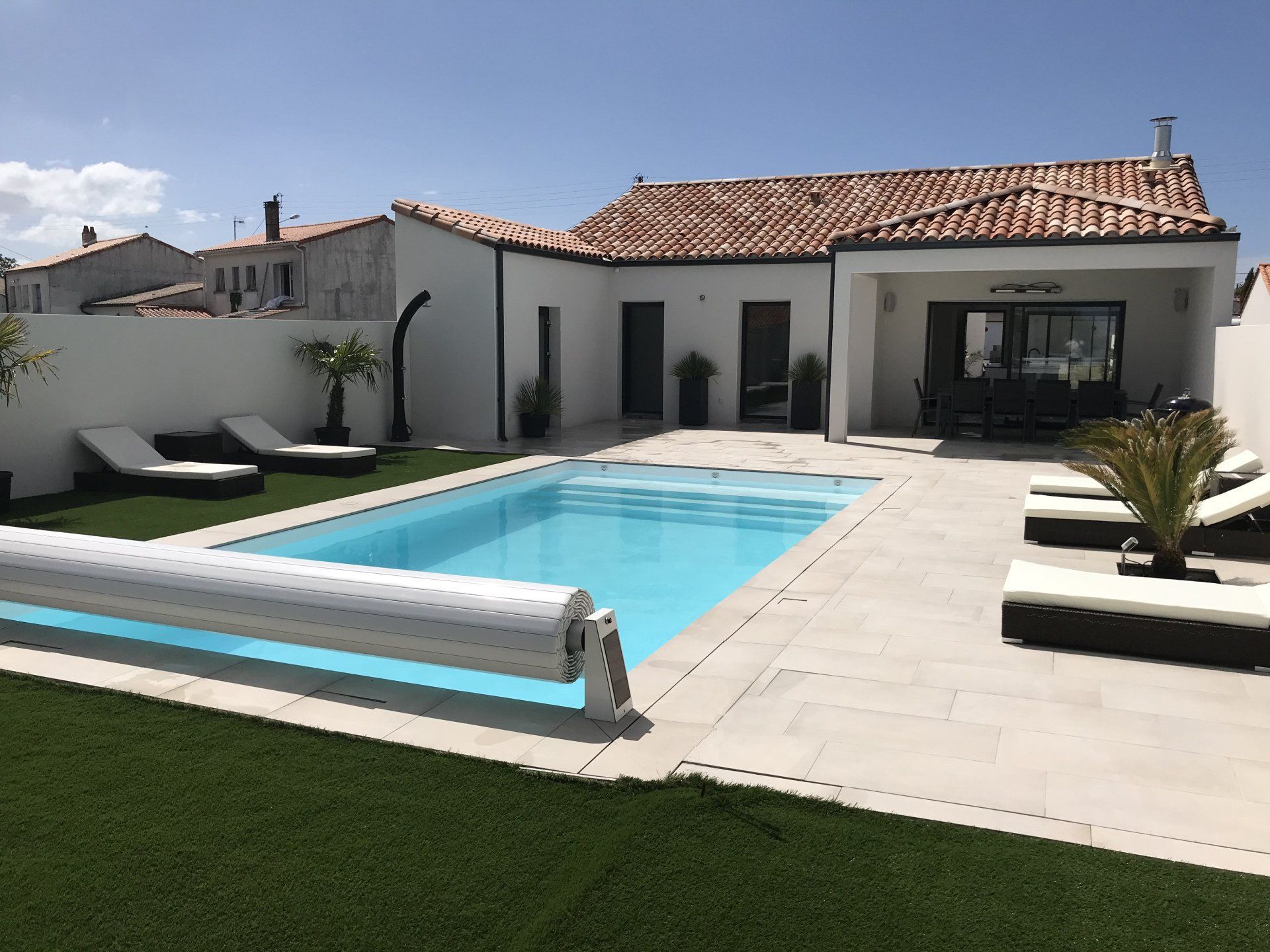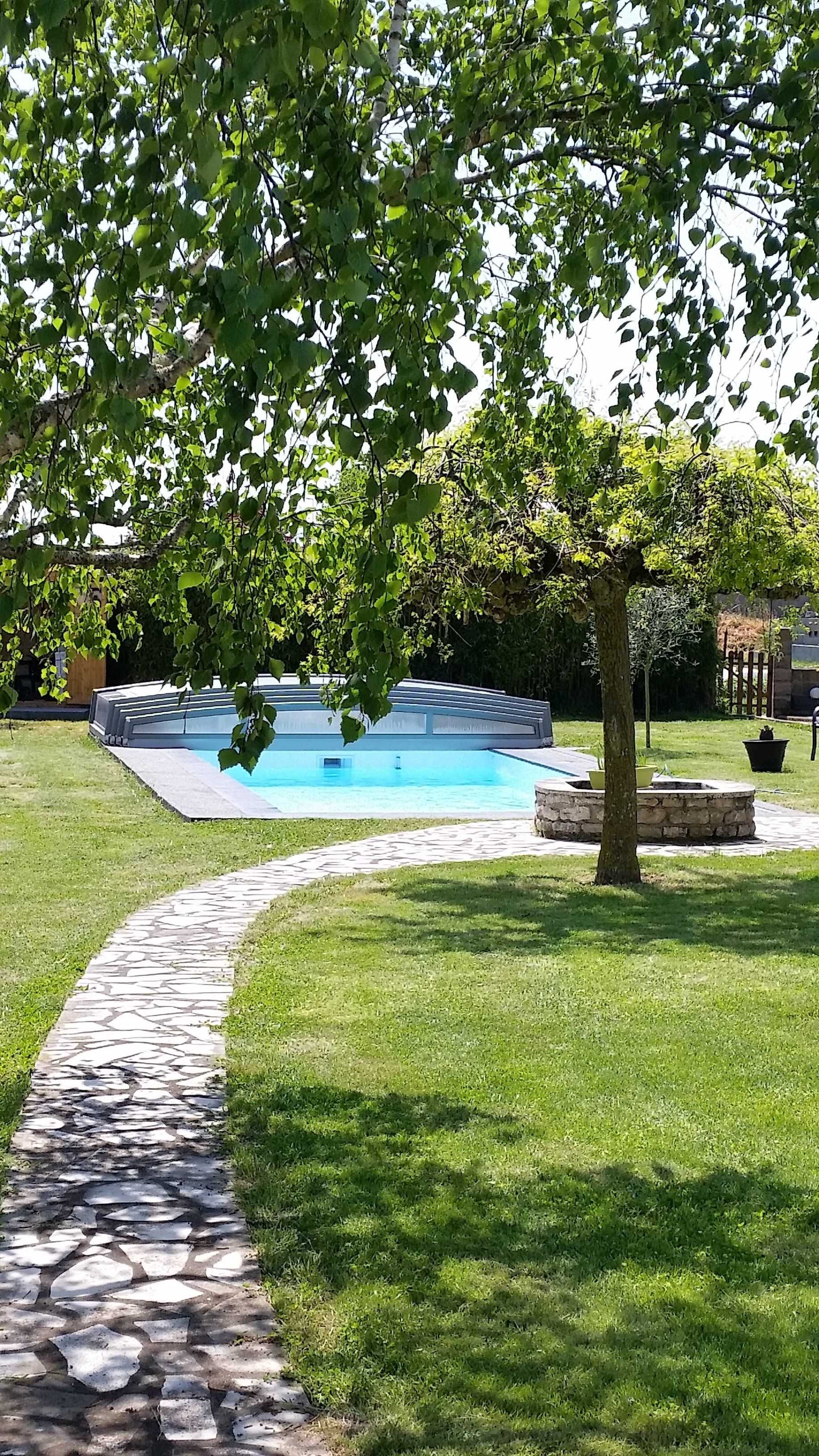 Unik hot Pool 4x10 escalier droit, plage immergée... volet imergé installé dans l'escalier et liner blanc pour une eau cristalline.... filtration sable et traitement au sel ! Eau 29°c ...